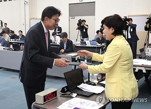 행안위 국감 증인선서문을 제출하는 박 시장 |