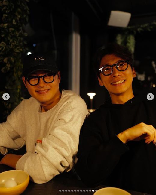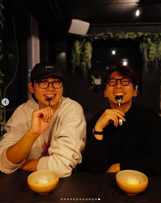 사진에는 곽윤기와 오상욱이 블랙 뿔테 안경을 맞춰 쓰고 분위기 좋은 레스토랑을 찾은 모습이 담겼다. 훈훈한 비주얼 속 두 사람은 커플템도 모자라 똑같은 포즈를 취해 다정한 분위기를 자아냈다.