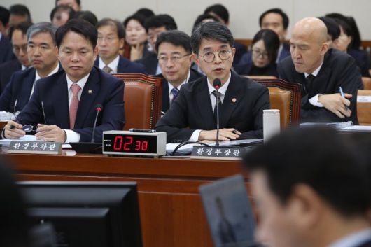 (서울=뉴스1) 이광호 기자 = 김완섭 환경부장관이 24일 오전 서울 여의도 국회에서 열린 환경노동위원회의 환경부, 기상청에 대한 종합 국정감사에서 의원 질의에 답하고 있다. 2024.10.24/뉴스1 /사진=뉴스1화상 |