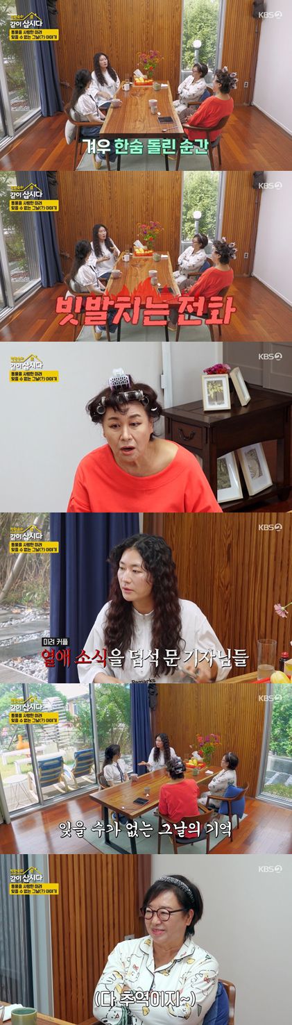 그러면서 "그날 열애설이 터졌다"라고 밝히며, 당시 모르는 번호로 전화가 계속 왔다고 이야기했다. 모르는 번호들은 다름 아닌 기자들이 건 것이었고, 김미려는 "열애설 터지고, 애 둘 낳고, 잊을 수 없는 날, 위대했다"라며 추억 회상을 갈무리했다.
