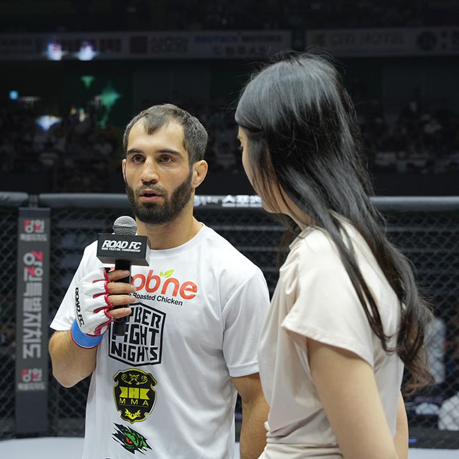 카밀 마고메도프가 제2회 로드FC 글로벌 토너먼트 라이트급 준준결승 통과 소감을 말하고 있다. 사진=세계격투스포츠협회 |