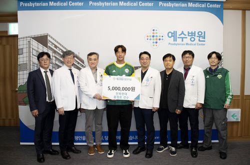 (서울=연합뉴스) 이영호 기자 = 프로축구 K리그1 전북 현대의 수비수 홍정호가 전주 예수병원을 방문해 기부금 500만원을 전달했다.