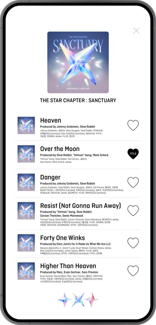 빅히트 뮤직은 26일 공식 SNS에 투바투의 미니 7집 '별의 장 : 생크추어리'(SANCTUARY) 트랙리스트 이미지를 공개했다. 앨범 분위기를 스포일러했다.