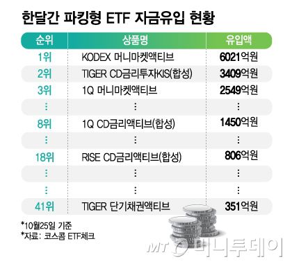 한달간 파킹형 ETF 자금유입 현황/그래픽=김지영 |