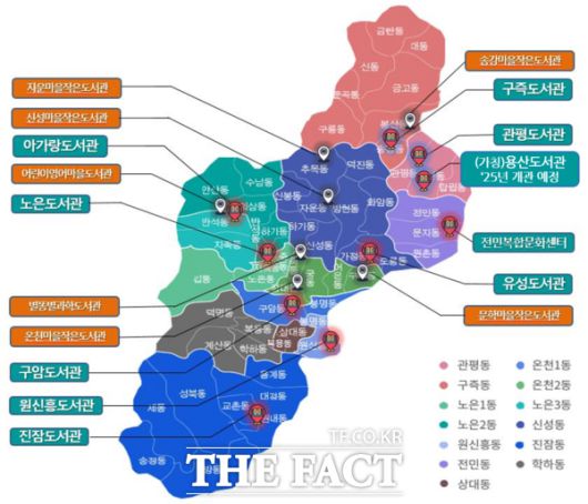 [더팩트ㅣ대전=정예준 기자] 대전 유성구(구청장 정용래)는 1993년 유성도서관 개관을 시작으로, 30년간 9개의 공공도서관을 건립했다. 현재 유성구에서 운영 중인 공공도서관은 총 9개소(△노은 △아가랑 △원신흥 △유성 △진잠 △구즉 △구암 △관평 △전민)로, 대전시 5개구 중 최다 공공도서관을 운영하고 있다. 내년 상반기 개관을 앞둔 용산도서관을 포함하면 대전시 공공도서관의 약 40%가 유성구에 있는 것이다.