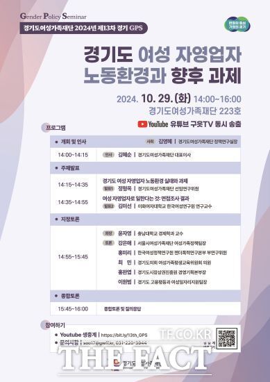 재단 공식 유튜브 채널인 구읏TV로 생중계되는 이날 세미나에서는 재단이 실시한 경기도 여성 자영업자 1169명 대상 설문조사와 25명의 면접조사 결과가 발표된다.