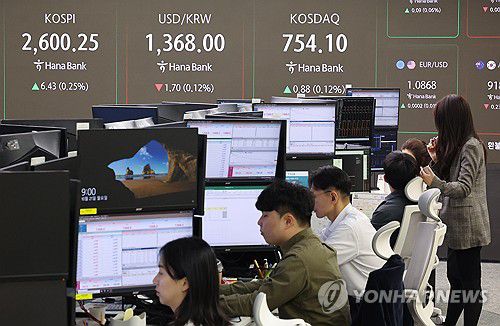 서울 중구 하나은행 본점 딜링룸 현황판 [연합뉴스 자료사진] |