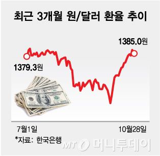 1028 최근 3개월 원달러 환율 추이/그래픽=김다나 |