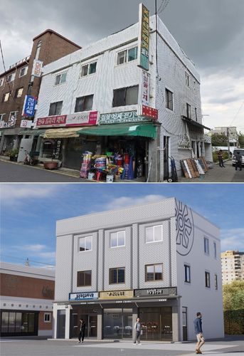 간판·어닝 개선 전(위)과 개선 구상안(아래) |