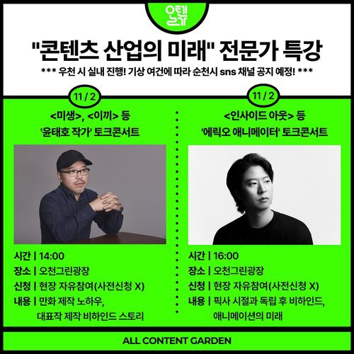 29일 순천시에 따르면 다음 달 2일 오천 그린광장에서 윤 작가와 픽사 스튜디오 출신 에릭 오 감독의 토크콘서트가 열린다.