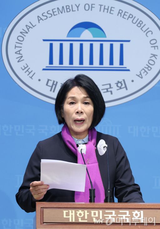 [서울=뉴시스] 고승민 기자 = 최민희 국회 과방위원장(더불어민주당 의원)이 29일 서울 여의도 국회 소통관에서 추경호 국민의힘 원내대표 국회 윤리위원회 제소 기자회견을 하고 있다. 2024.10.29. kkssmm99@newsis.com /사진=고승민 |