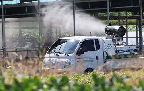럼피스킨이 발생한 한 젖소 농장 주변 농장에서 방역차가 방역을 하고 있다. (사진=연합뉴스) |