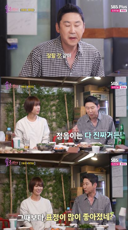 이날 황정음과 신동엽의 '솔로라서' MC 첫 미팅 자리가 공개됐다. 한 곱창집에 나란히 앉은 신동엽은 황정음과 술잔을 부딪쳤다.