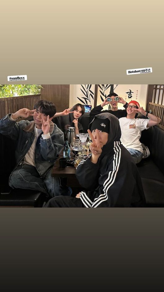 핫샷 멤버인 김티모테오, 고호정, 노태현, 하성운, 최준혁은 지난 29일 각각 자신의 계정에 한 자리에 모인 사진을 게재했다. 윤산은 현재 미국에 있어 함께하지 못했다.