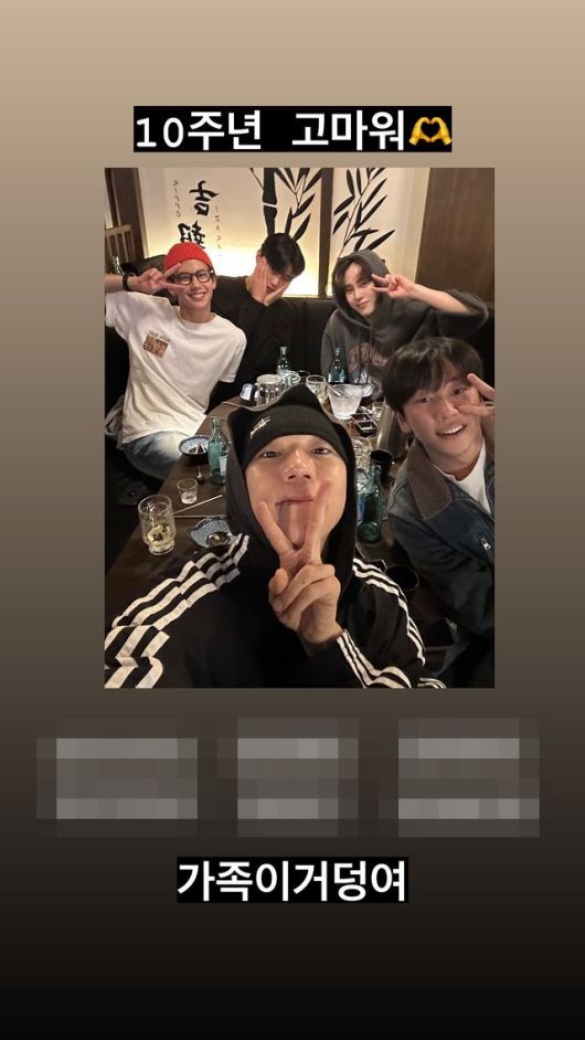 멤버들은 캐주얼한 모습으로 술 자리 등을 함께 했고, 여전한 아이돌 비주얼을 뽐내 시선을 사로잡았다. 멤버들은 "10주년 고마워. 가족이거덩여", "사랑해 고마워 자주 보자" 등 여전한 친분을 자랑했다.