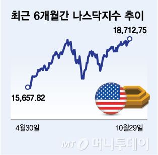 미국 빅테크 기업들의 실적 발표가 이번주 절정을 이루는 가운데 나스닥지수가 29일(현지시간) 사상최고치를 경신했다. 지난 7월10일 이후 3개월 20일만이다.