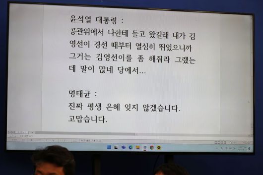 31일 서울 여의도 국회에서 열린 민주당 긴급 기자회견에서 윤석열 대통령과 명태균씨의 녹취 파일이 공개되고 있다. 사진=서동일 기자 |