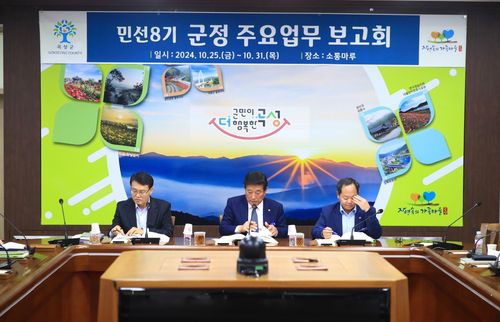 (곡성=연합뉴스) 박철홍 기자 = 조상래 전남 곡성군수가 첫 업무보고회를 개최해 43건 공약 이행 계획을 수립했다.