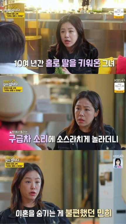 김민희는 "딸이 초등학교 3학년 때 홀로서기를 결심했다. 지금은 25살이 됐다"면서 긴 시간 홀로 양육을 해왔다고 전했다.