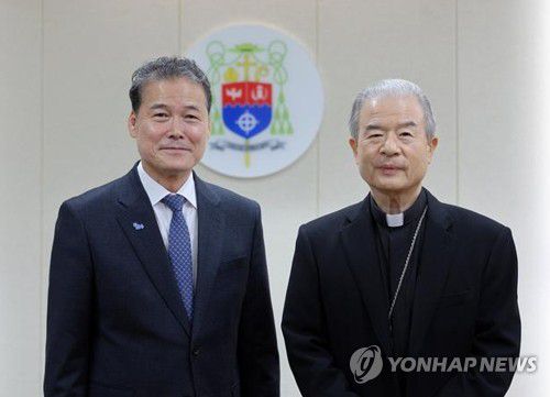 김영호 통일부 장관과 이용훈 주교 기념 촬영
