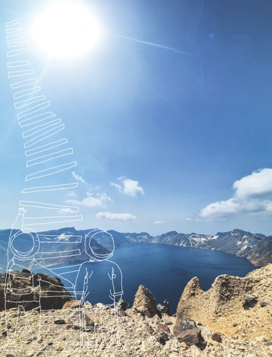 정상까지 300개의 계단을 남겨두고 지원사와 한 번 더 쉬기로 했다. 숨을 고르고 당기는 다리를 스트레칭했다. 지나가던 중국인 남성이 우리에게 조금만 더 힘을 내라 응원했다. 정상 풍광이 끝내준다는 말도 전했다. 나와 지원사는 앞서거니 뒤서거니 서로를 끌어당겨주며 계단을 올라갔고, 그렇게 우리는 천지 앞에 섰다.
