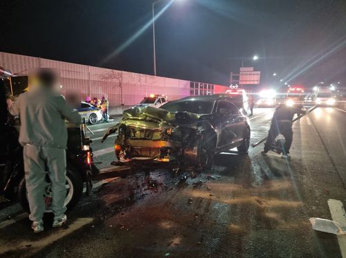 (부산=연합뉴스) 박성제 기자 = 6일 0시께 남해고속도로 부산 방향 동김해 나들목 인근에서 30대 운전자 A씨가 몰던 승용차가 도로에 정차 중이던 차량을 들이받았다.