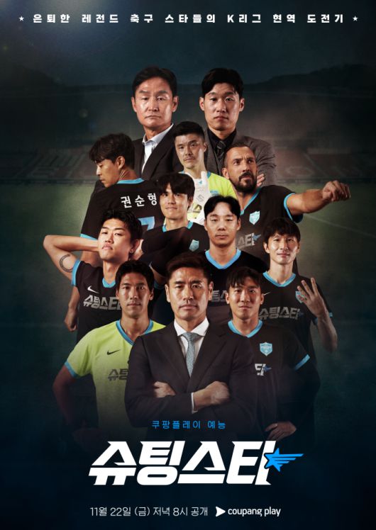쿠팡플레이 '슈팅스타'는 성장 축구 예능 프로그램이다. 은퇴한 레전드 선수들이 박지성, 최용수와 한 팀으로 모여 K리그 현역에 도전하는 내용이다.