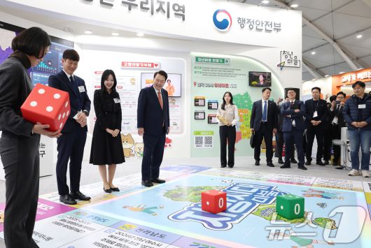 (서울=뉴스1) 송원영 기자 = 윤석열 대통령이 6일 강원도 춘천 송암스포츠타운 일대에서 열린 '2024 대한민국 지방시대 엑스포' 행사장 행정안전부관에서 '지방시대마블' 게임을 하고 있다. (대통령실 제공) 2024.11.6/뉴스1sowon@news1.krCopyright ⓒ 뉴스1. All rights reserved. 무단 전재 및 재배포, AI학습 이용 금지.