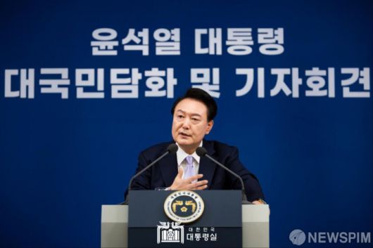 [서울=뉴스핌] 윤석열 대통령이 7일 오전 용산 대통령실에서 대국민담화 및 기자회견을 하고 있다.[사진= 대통령실]2024.11.07 photo@newspim.com 저작권자(c) 글로벌리더의 지름길 종합뉴스통신사 뉴스핌(Newspim), 무단 전재-재배포 금지