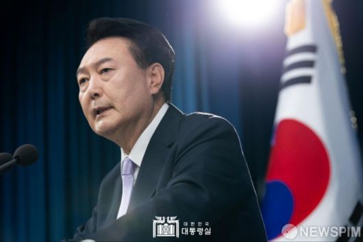 [서울=뉴스핌] 윤석열 대통령이 7일 오전 용산 대통령실에서 대국민담화 및 기자회견을 하고 있다.[사진= 대통령실]2024.11.07 photo@newspim.com 저작권자(c) 글로벌리더의 지름길 종합뉴스통신사 뉴스핌(Newspim), 무단 전재-재배포 금지