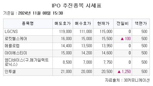 상장 예비심사 승인 종목으로 반도체 제조용 기계 제조기업 아이에스티이는 전날과 동일한 호가를 보였다.