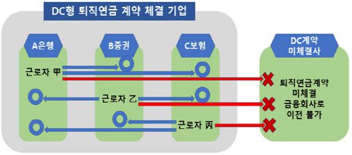 DC형 퇴직연금의 이전 가능여부(예시). (자료=금감원) |