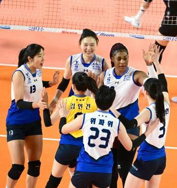 (서울=연합뉴스) 이동칠 기자 = 여자 프로배구 현대건설이 정관장과 원정 대결에서 롱랠리 끝에 이길 수 있었던 건 피 말리는 4세트 듀스 접전 승리가 결정적 역할을 했다.