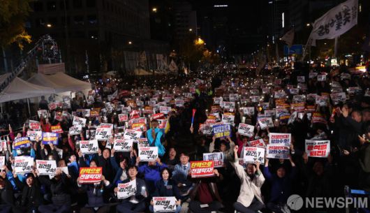 [서울=뉴스핌] 이호형 기자 = 9일 오후 서울 시청역 인근서 열린 김건희·윤석열 국정농단 규탄· 특검 촉구 제2차 국민행동의 날 행사에서 참석한 시민들이 촛불과 손 피켓을 들고 구호를 외치고 있다. 2024.11.09 leemario@newspim.com |