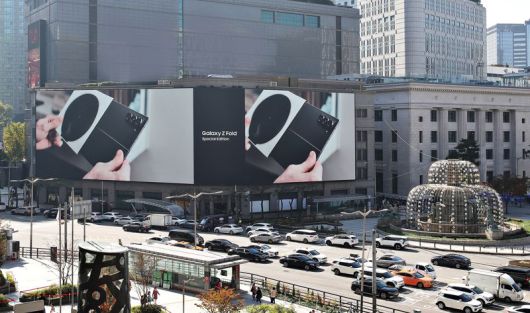 지난 8일 서울 중구 신세계스퀘어 본관에서 상영 중인 '갤럭시 Z 폴드 스페셜 에디션' 디지털 옥외 광고. 삼성전자 제공 |