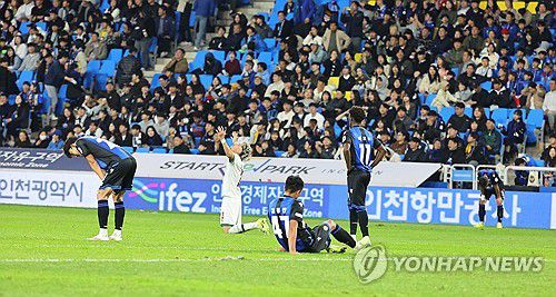 (인천=연합뉴스) 배진남 기자 = 프로축구 K리그1 인천 유나이티드가 '생존왕 본능'을 이어가지 못하고 결국 '창단 첫 2부 강등'이라는 수모를 당했다.