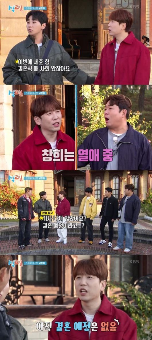 김종민과 문세윤은 "지금 얘기해"라고 남창희를 몰아갔다. 남창희는 "없는데 어떻게 얘기를 하느냐. 결정된 게 아무 것도 없다"고 했다.