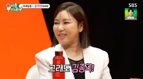 이날 MC 신동엽은 “가인 씨 이상형이 김종국이라고 한다”며 김종국 아버지에게 “가인 씨 같은 며느리가 집에 들어온다면 어떨 것 같냐”라고 물었다. 이에 김종국 부친은 “상당히 곱게 보고 있다”고 만족해했다.