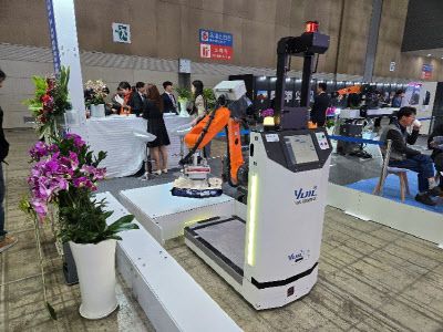 지난 10월 경기 일산 킨텍스에서 개최된 ‘2024 로보월드’에서 유일로보틱스가 자율 주행 로봇(AMR)과 다관절로봇을 활용한 공정자동화 업무를 시현하고 있다. (사진=유일로보틱스) |