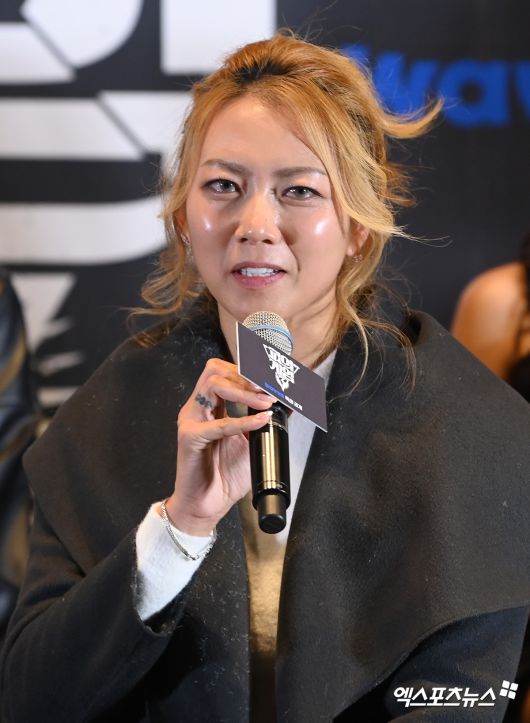 (엑스포츠뉴스 고아라 기자) 12일 오후 서울 성동구 메가박스 성수에서 웨이브 오리지널 '피의 게임 시즌3' 시사회 및 제작발표회가 열렸다. 이날 제작발표회에 참석한 출연자 엠제이킴이 포토타임을 갖고 있다.고아라 기자 iknow@xportsnews.com
