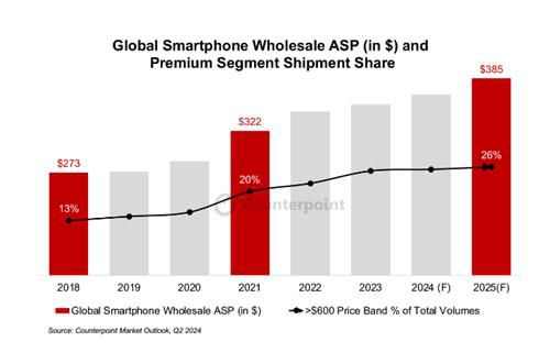 이는 애플리케이션 프로세서(AP), 메모리 등 부품 원가 상승 때문이라고 카운터포인트리서치는 분석했다.