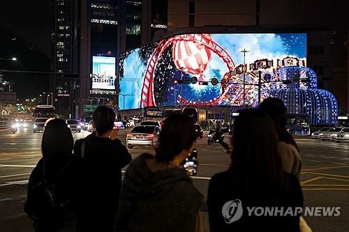 (서울=연합뉴스) 황희경 기자 = 건물 외벽을 이용해 다양한 영상 콘텐츠를 선보이는 미디어 파사드(Media Facade). 2004년 서울 압구정 갤러리아백화점 외벽에 처음 도입됐던 미디어 파사드는 2022년 8월 기준 서울에만 64개가 설치됐을 정도로 대중화됐고 첨단 기술도 적용돼 다양한 영상을 내보낼 수 있게 됐다. 크리스마스 시즌 '인증샷 성지'가 되는 백화점들의 화려한 외벽 장식도 미디어 파사드를 이용한 것들이다.