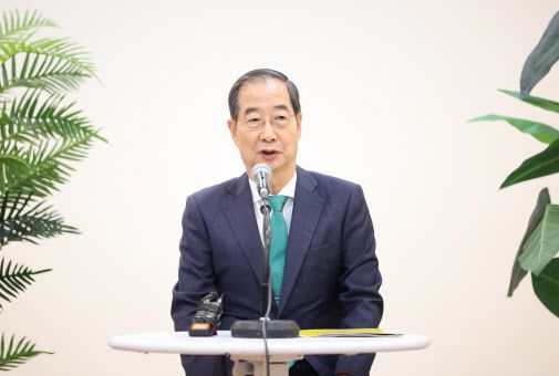 출입기자간담회에서 발언하는 한덕수 총리(사진=연합뉴스) |