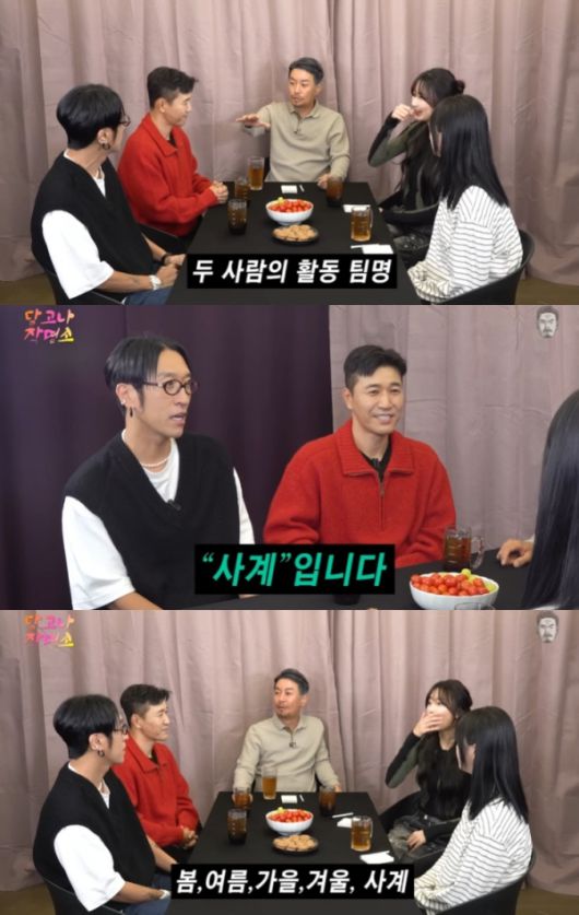 이어 김대희는 "신지가 빠졌는데 누구지? 이렇게 생각할 수 있다"며 유닛 활동명으로 '뉘신지'를 추천했고, 김종민과 빽가는 마음에 들어하는 모습을 보여 웃음을 자아냈다. 통통 튀는 입담과 예능 케미를 보여준 김종민과 빽가는 신곡 '사계'도 홍보하며 이목을 끌었다.