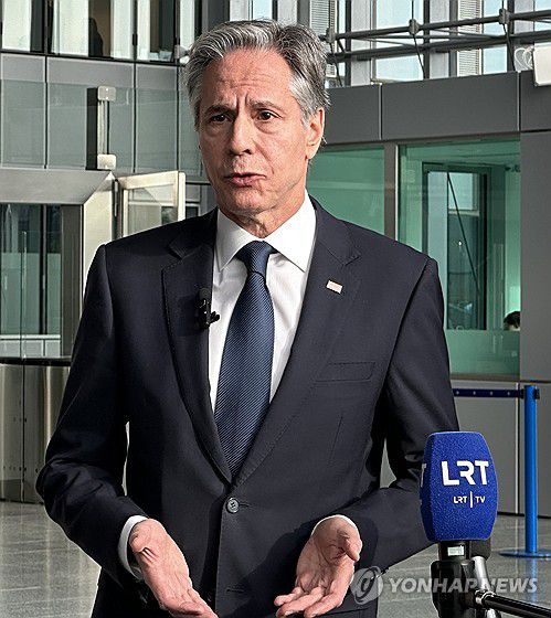 (브뤼셀=연합뉴스) 정빛나 특파원 = 토니 블링컨 미 국무장관이 13일(현지시간) 벨기에 브뤼셀 나토 본부에서 취재진 질문에 답하고 있다. 2024.11.13