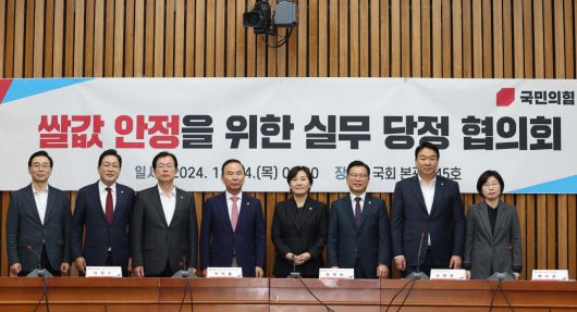 당정은 이날 오전 서울 여의도 국회에서 열린 '쌀값 안정 실무당정협의회'에서 반복되고 있는 산지 쌀값 하락 현상을 근본적으로 개선할 대책 마련에 힘쓰겠다고 했다. 이날 당정협의회엔 농림축산해양수산식품위원회 간사인 정희용 의원과 농해수위 소속 박덕흠·이만희·이양수·김선교·서천호 의원이 참석했으며 정부 측에서는 송미령 농림축산식품부 장관, 박수진 식량정책실장 등이 자리했다.