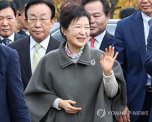 박 전 대통령은 환하게 웃는 표정으로 행사장으로 이동하며 시민 등과 눈을 맞추며 악수하기도 했다.