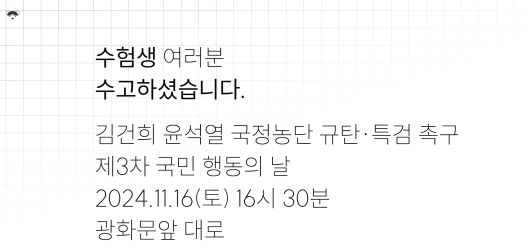 시험지에 적힌 이 링크를 입력해 보니 문제지에 적힌 취지와는 다르게 집회 안내 문구가 보이는 웹사이트가 열렸다. 오는 16일 오후 4시30분부터 서울 광화문앞 대로에서 열리는 ‘김건희·윤석열 국정농단 규탄·특검 촉구 제3차 국민 행동의 날’ 집회가 열린다는 내용이 나온다.