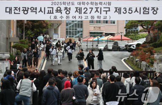 14일 대전시교육청 27지구 제35시험장인 대전 호수돈여자고등학교에서 대학수학능력시험을 마친 수험생들이 시험장을 나서고 있다. 2024.11.14/뉴스1 ⓒ News1 김기태 기자