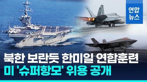 3국은 이날 스텔스 전투기 F-35C가 항모에 착륙하는 모습과 F/A-18 호넷 전투기 2대가 이·착륙하는 훈련 과정을 선보였습니다.